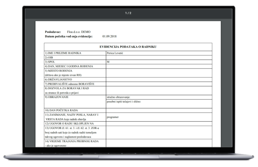 • Vođenje evidencije o radnicima prema predlošku iz Narodnih novina