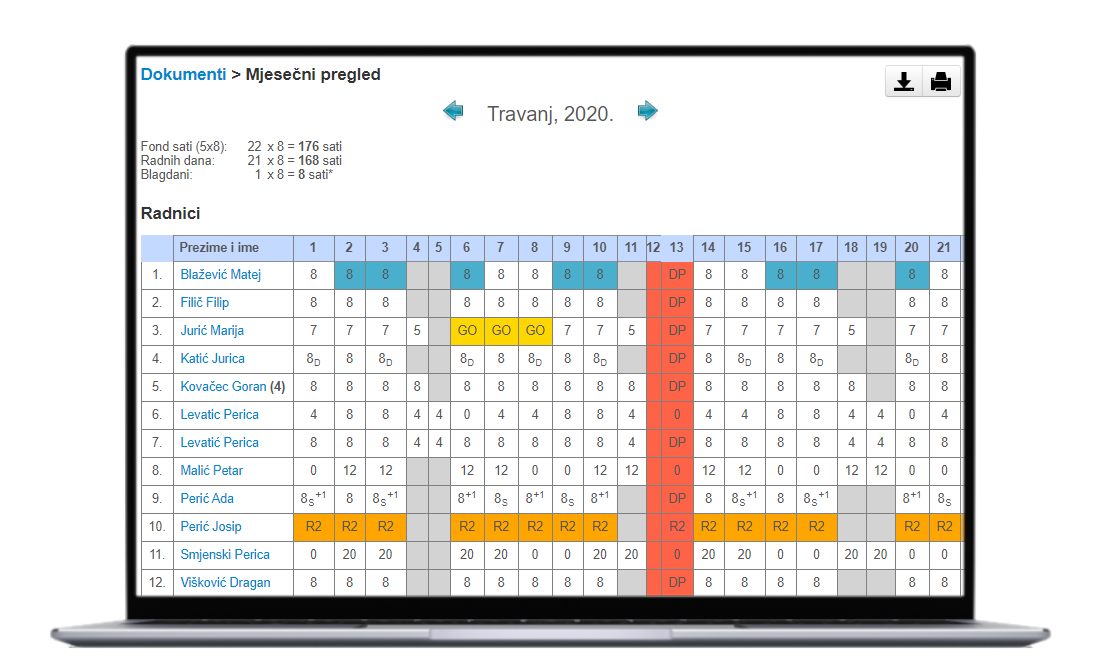 • Automatski izračun iz mjesečnih tablica evidencije