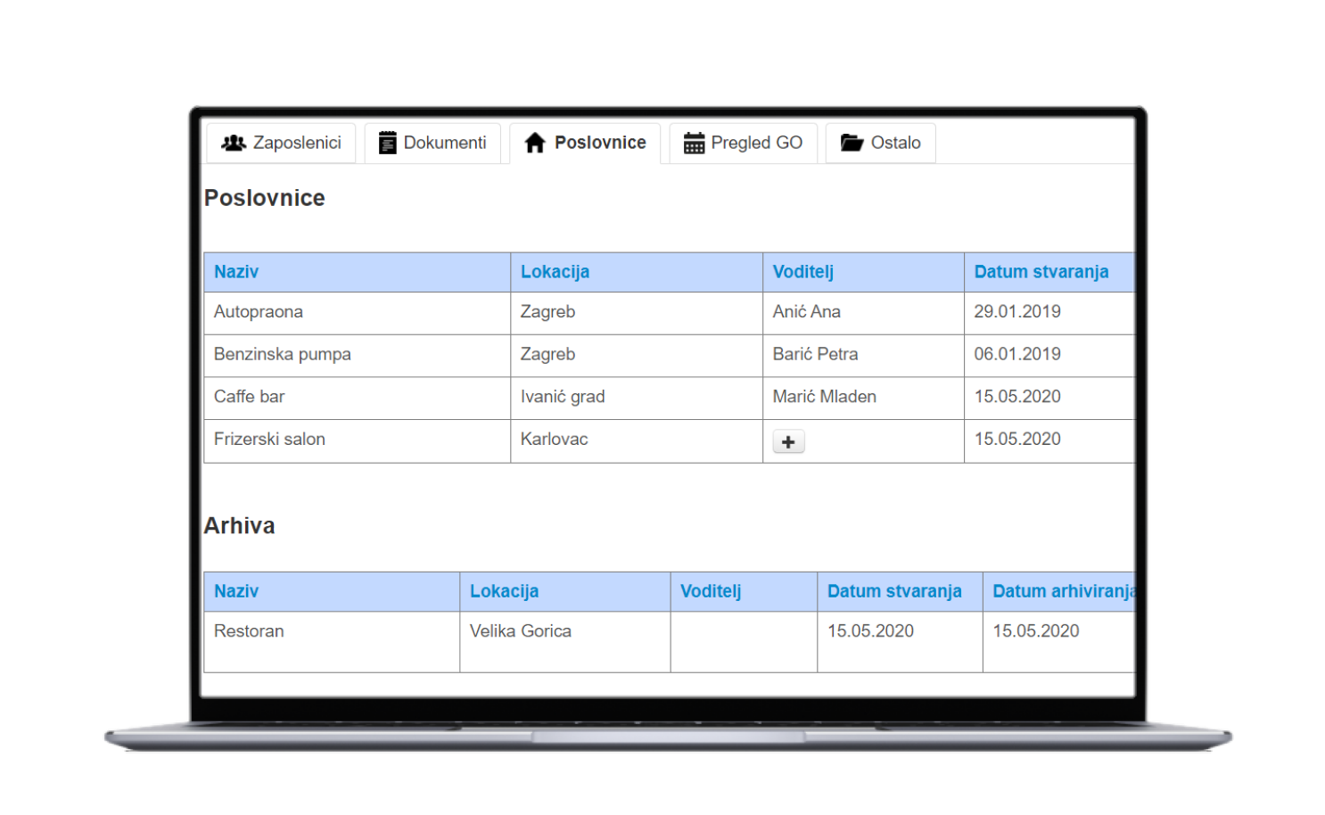 • Svaki voditelj zadužen je za svoju poslovnicu